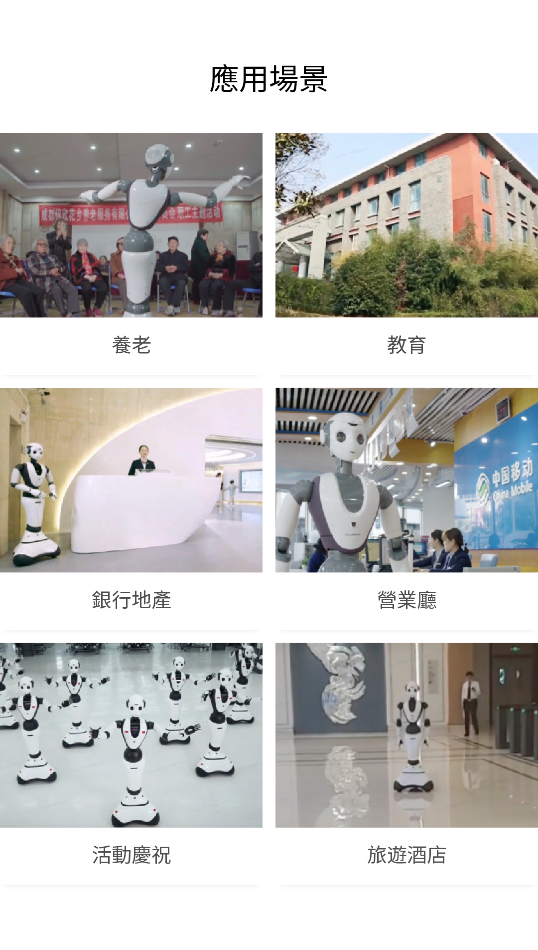 為各類客戶提供迎賓接待、引導(dǎo)講解、群舞演繹、業(yè)務(wù)辦理、養(yǎng)老陪伴、教學(xué)科研等應(yīng)用服務(wù)。
