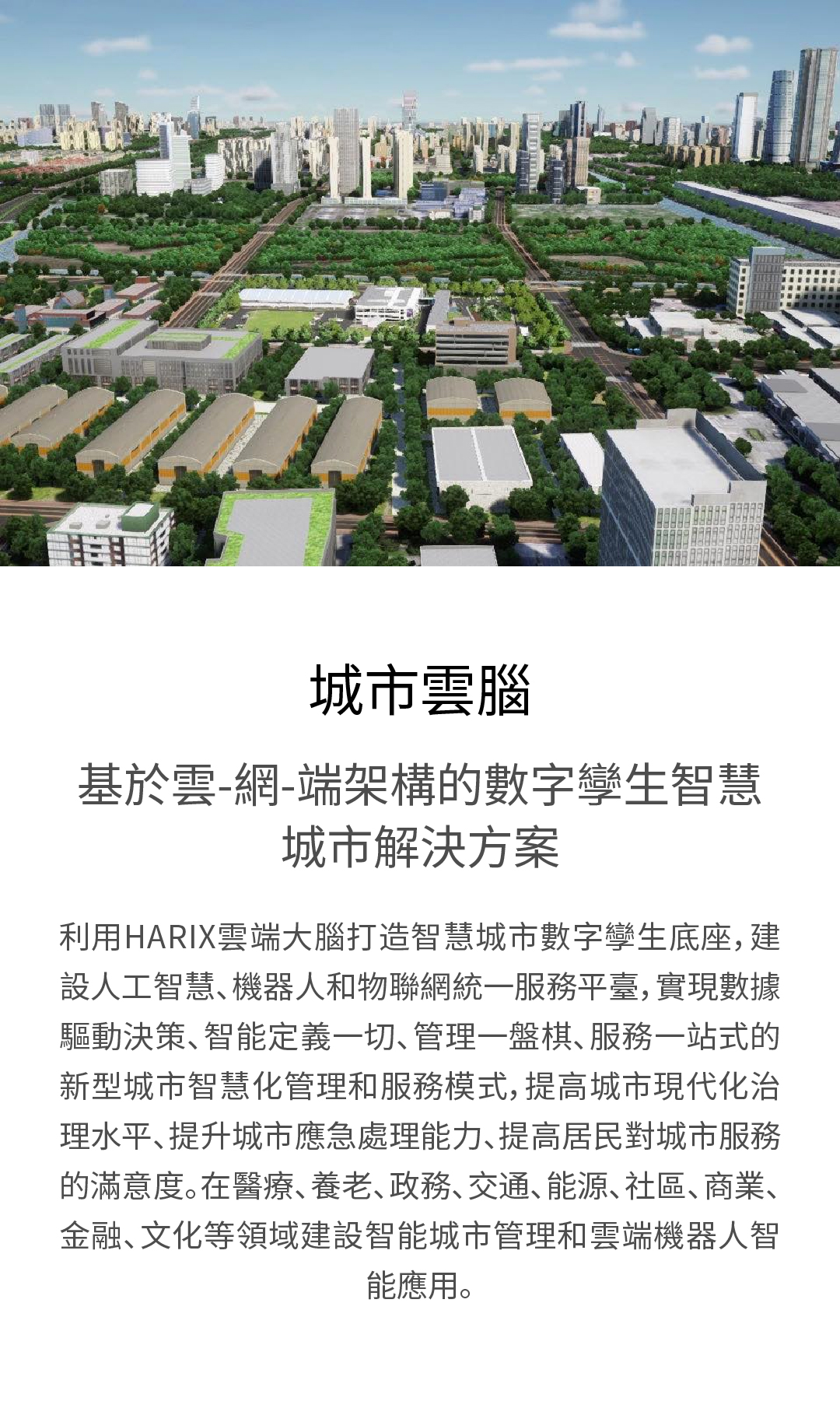 利用HARIX雲(yún)端大腦打造智慧城市數(shù)字孿生底座,建設(shè)人工智慧、機器人和物聯(lián)網(wǎng)