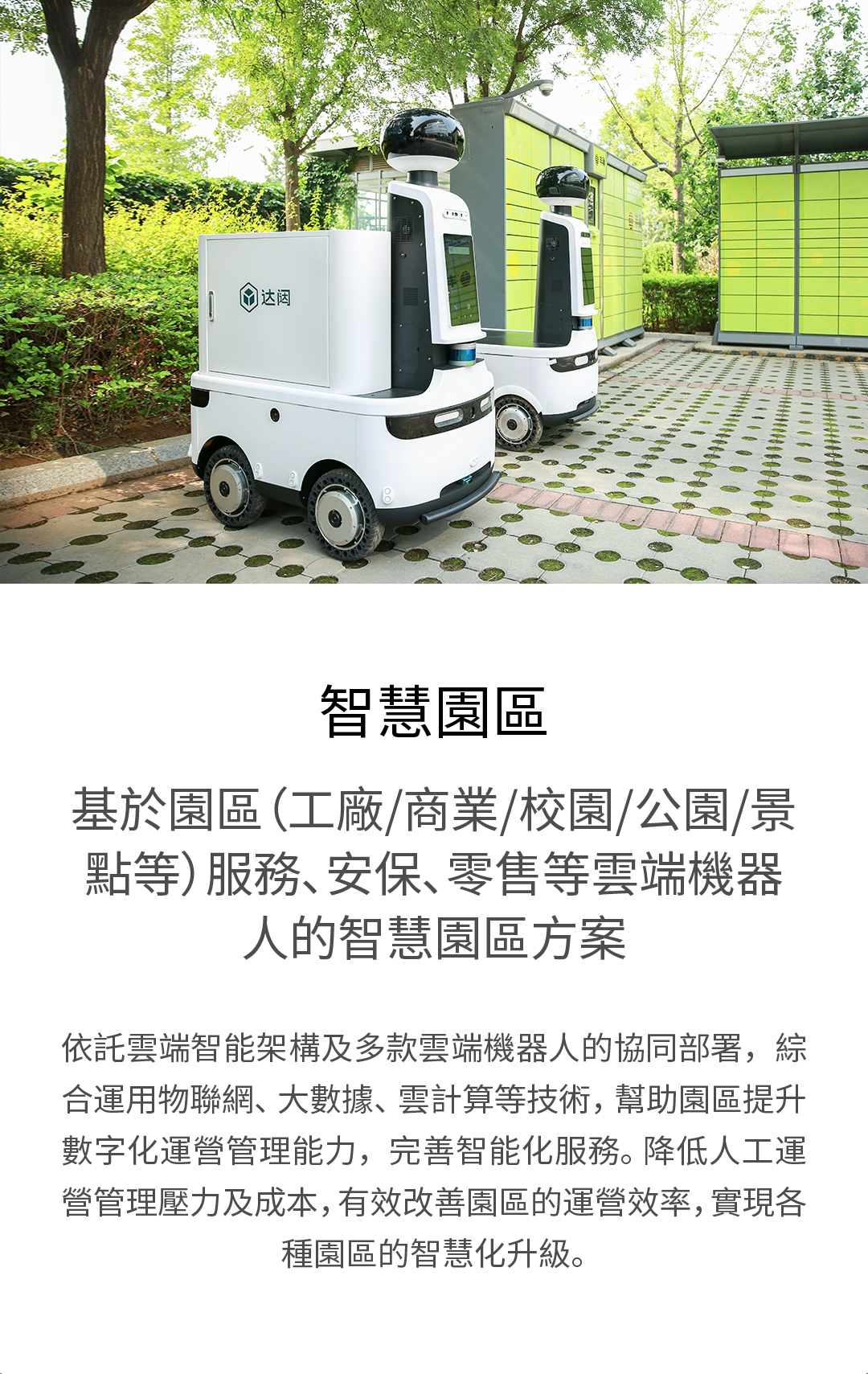 基於園區(qū)(工廠/商業(yè)/校園/公園/景點等)服務、安保、零售等雲(yún)端機器人的
