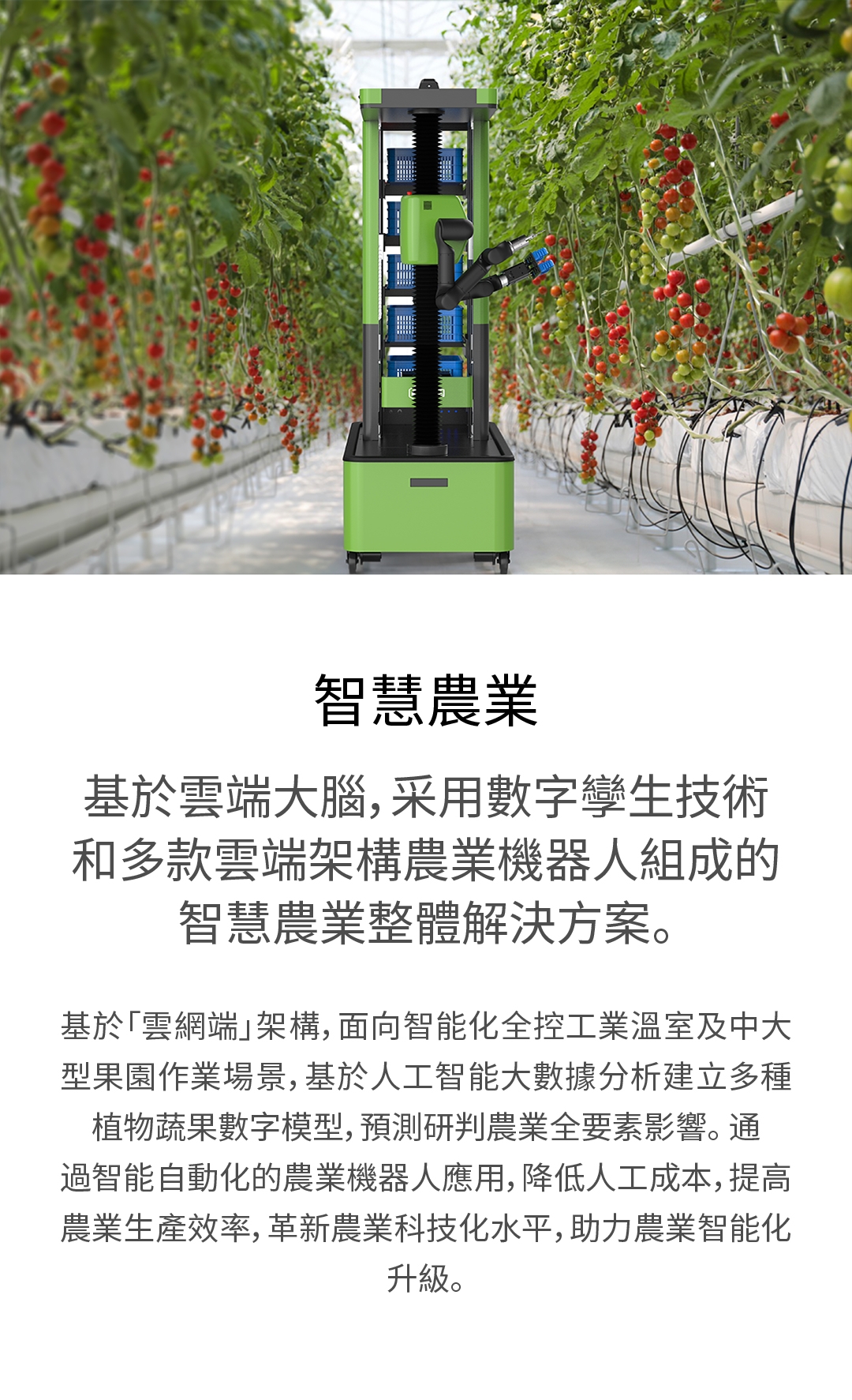 基於雲(yún)端大腦,採用數(shù)字孿生技術(shù)和多款雲(yún)端架構(gòu)農(nóng)業(yè)機器人組成的智慧農(nóng)業(yè)